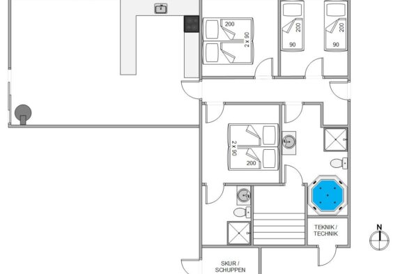 Auf 3 Schlafzimmer mit 2 Doppelbetten und 2 Einzelbetten können sich alle Mitreisenden verteilen, damit jeder eine entspannte und komfortable Nacht hat. Im großräumigen Wohnzimmer steht der Kaminofen, der die besondere Dänemark-Atmosphäre im Winter, aber auch im Sommer herstellt. 3 deutsche Fernsehprogramme stehen für das Abendprogramm bereit.