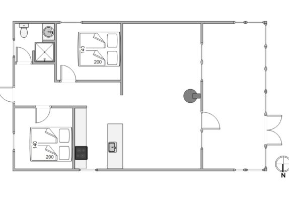 Die Betten haben eine Breite von 140 cm und insgesamt gibt es 2 Schlafzimmer sowie 1 Badezimmer.