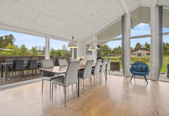 | Ihr seid eine richtige Großfamilie oder plant euren nächsten Urlaub gemeinsam mit Freunden? Dann schaut doch einmal hier genau hin. Dieses 2020 neu erbaute Ferienhaus ist ein wahres Schmuckstück. Modern, gut und komfortabel ausgestattet, bietet es Platz für bis zu 10 Personen und eure Hunde. Das wahre Highlight dieses Ferienhauses ist, dass alle gemeinsam eine unvergessliche Zeit verbringen können – dank der vielen Annehmlichkeiten. Komfortabler Innenbereich für die ganze FamilieDas Ferienhaus im Solvang 28 bietet auf großzügigen 146 m2 mit 5 Schlafräumen und 2 Badezimmern Platz für bis zu 10 Personen. 3 Schlafzimmer befinden sich im Haupthaus, während die weiteren 2 Schlafzimmer sowie eines der Badezimmer in einem schönen Anbau untergebracht sind. Der Innenbereich ist modern und komfortabel eingerichtet, was ihn ideal für einen entspannten Aufenthalt macht. Besonders hervorzuheben ist die gut ausgestattete Küche, die keine Wünsche offenlässt und sich perfekt für die Zubereitung gemeinsamer Mahlzeiten eignet. Ein weiteres Highlight ist die hauseigene Sauna in einem der Badezimmer, die für erholsame Wellnessmomente sorgt. Der gemütliche Kamin im Wohnzimmer schafft eine angenehme Atmosphäre, in der man nach einem erlebnisreichen Tag entspannen und die Zeit miteinander genießen kann. Für zusätzliche Unterhaltung sorgen der Billardtisch und die Spielkonsole, die für Spaß und Action garantieren. Solvang 28: Der perfekte Ort für Entspannung und UnterhaltungDie teilweise überdachte Terrasse des Ferienhauses ist der ideale Ort, um das Leben im Freien zu genießen. Sie ist mit bequemen Gartenmöbeln, Liegestühlen und einem Grill ausgestattet, sodass man an warmen Tagen ein leckeres Barbecue zubereiten und die Sonne genießen kann, während die Kinder fröhlich spielen. Ein besonderes Highlight im Außenbereich ist der Außenwhirlpool, der das ganze Jahr über genutzt werden kann. Es ist einfach unvergesslich, an einem kühlen Winterabend im warmen Wasser zu entspannen und unter dem Sternenhimmel den Moment zu genießen. Zudem steht eine Außendusche zur Verfügung, die von April bis November genutzt werden kann – ideal für eine erfrischende Dusche nach einem Tag am Strand oder im Garten. Eine Lademöglichkeit für ein E-Auto ist ebenfalls vorhanden, um euren Aufenthalt noch komfortabler zu gestalten. Umgebung und FreizeitmöglichkeitenDas Ferienhaus befindet sich in dem schönen Gebiet von Houstrup, das besonders bei Wanderern und Radfahrern sehr beliebt ist. Direkt an der Blåbjerg Plantage gelegen und nur wenige Minuten vom Nordseestrand entfernt, ist dies ein perfekter Ausgangspunkt für verschiedene Outdoor-Aktivitäten. Die Umgebung bietet zahlreiche Wander- und Radwege, ideal, um die Natur zu erkunden.  In der Umgebung gibt es zahlreiche Freizeitmöglichkeiten. In Nørre Nebel, nur eine kurze Fahrt entfernt, findet man zahlreiche Einkaufsmöglichkeiten, Boutiquen und Lebensmittelgeschäfte für den täglichen Bedarf. Bork Havn am Ringkøbing Fjord ist ein Eldorado für Wassersportler und bietet neben einem Hafen auch das Wikinger Museum für Interessierte. Der beliebte Badeort Henne Strand ist ebenfalls schnell erreichbar und bietet zahlreiche Cafés, Restaurants sowie einen quirliges Urlaubsziel. Weitere Strände wie Houstup, Lønne und Nymindegab sind ebenfalls in kurzer Zeit erreicht und laden zu ausgedehnten Spaziergängen oder zum Drachenfliegen ein.   |