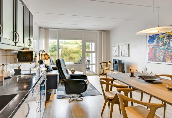 In einem Appartmentkomplex im Klitvej 2 liegt nur 100 Meter sowohl vom Strand als auch von den Einkaufsmöglichkeiten diese kleine und gepflegte Ferienwohnung mit Terrasse. Ein Stellplatz gehört dazu, sodass ihr euer Auto unmittelbar am Komplex abstellen könnt.