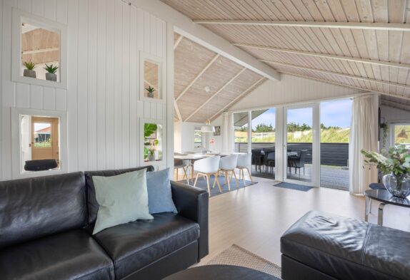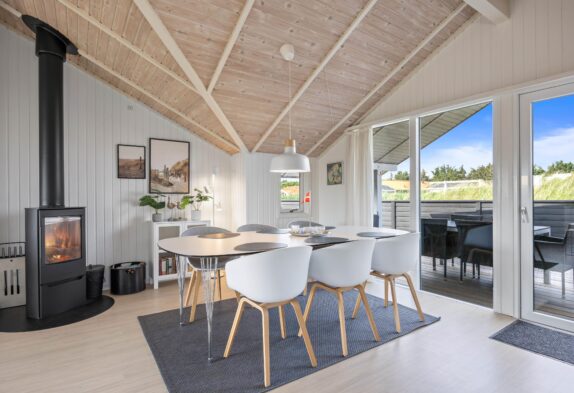 Das Herz des Ferienhauses ist der gemütliche Wohnraum mit offener Küche – hier könnt ihr viele schöne Stunden im Laufe des Urlaubs mit euren Liebsten verbringen – sowohl mit schönen Brettspielen oder einem entspannten Abend in der großen Sofaecke, in der die ganze Familie Platz findet. An den kühlen Tagen lädt der Kamin zum Heizen ein, so dass er euch mit seiner kuscheligen Wärme umhüllen kann.