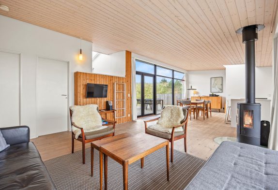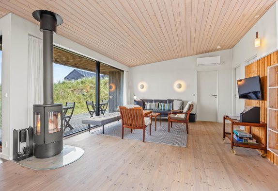Die Ausstattung des Ferienhauses hier auf Tyttebærvej 1B ist komfortabel und gut. Selbstverständlich stehen euch Annehmlichkeiten wie ein Geschirrspüler, eine Waschmaschine und ein Trockner helfend zu Seite. Ein Kamin sorgt an kühleren Tagen für behagliche Temperaturen aber auch eine moderne und energiesparende Wärmepumpe steht bereit. In Vejers gibt es Einkaufsmöglichkeiten und die Idylle dieses kleinen Badeortes an der dänischen Westküste wird euch begeistern.