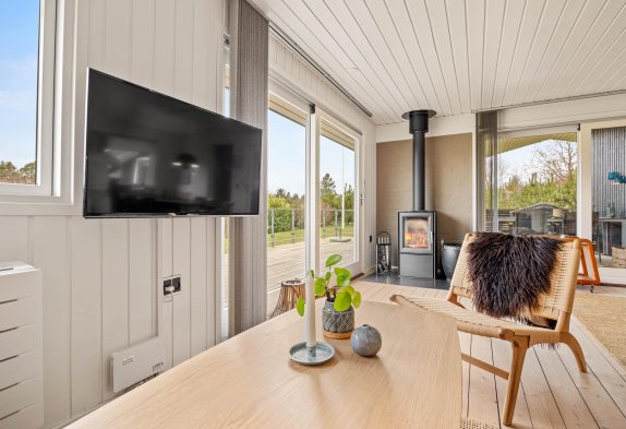 An kühleren Tagen sorgt wahlweise eine moderne und energiesparende Wärmepumpe oder aber ein traditioneller Kamin für kuschelige Temperaturen. An den Tagen mit etwas unbeständigen Wetterlagen, macht sicher der Kamin das Rennen und dann heißt es einfach Hygge pur – Beine hochgelegt, ein spannendes Buch lesend oder ganz entspannt die Lieblingsserie im TV sehen.