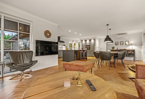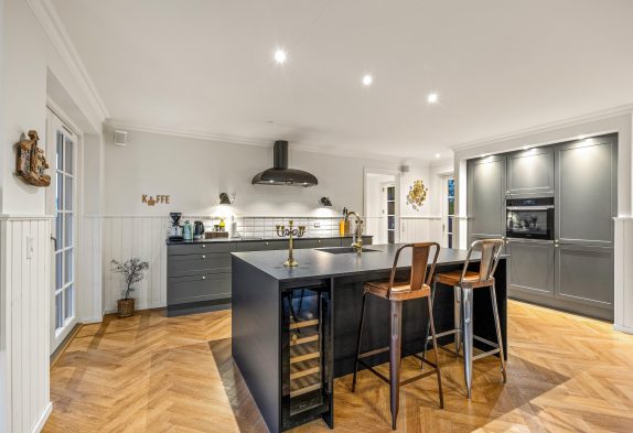 Das Herzstück des Hauses bildet die in das Wohnzimmer integrierte Küche. Egal ob ihr eure Liebsten mit einem selbstgemachten Gourmet Menü verwöhnen wollt oder einfach zusammen mit Freunden oder der Familie kochen möchtet, die offene Küche mit der großen Kücheninsel lädt einfach zu gemeinsamen Kochabenden ein. Für die unter euch, die am liebsten anderen beim Kochen zugucken ist auch gesorgt, ihr könnt es euch einfach mit einem Glas Wein aus dem eigenen Weinkühlschrank gemütlich machen, mit den anderen plaudern und auf euer Essen warten.