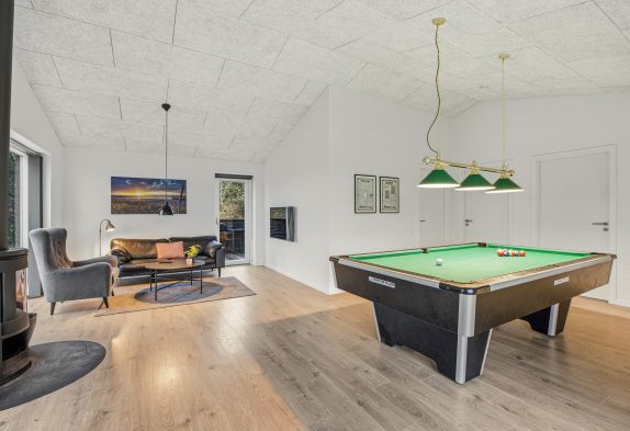 Die große und moderne Küche mit integriertem Essbereich lädt zum gemeinsamen Kochen ein und lässt keine Wünsche offen – anschließende Spieleabende sollten hier keine Seltenheit sein. Im angrenzenden Aktivitätsraum, der unter anderem mit einem Poolbillardtisch ausgestattet ist, kommt bestimmt keine Langeweile auf. An kühleren Abenden könnt ihr die wohlige Wärme vom Kamin genießen und es euch auf der Couch mit einem guten Buch oder bei einem Abend vor dem Fernseher so richtig gemütlich machen. Alternativ steht euch eine moderne und kostensparende Wärmepumpe zur Verfügung.