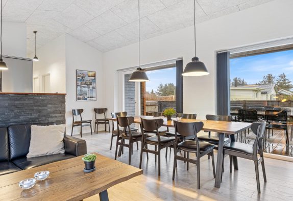 Dieses in 2021 fertiggestellte Aktivitätsferienhaus in Nørre Lyngvig findet ihr im Fyrmarken 107 unweit vom Leuchtturm Lyngvig Fyr und dem Strand. Durch die perfekte Aufteilung ist das Ferienhaus ideal für zwei Familien mit Kindern oder für einen Urlaub mit Freunden geeignet. Natürlich sind hier auch eure Hunde herzlich willkommen. Die Besonderheit dieses Hauses ist der Außenwhirlpool. Zusätzlich bietet der Aktivitätsraum Platz für Spaß und Spiel.