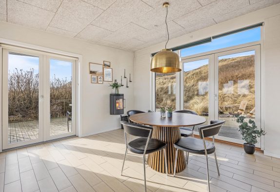 Die Fußbodenheizung sorgt für eine angenehme Grundtemperatur und bei Bedarf kann der zentral platzierte Kamin genutzt werden. Er umhüllt euch an kühleren Abenden mit seiner Wärme und sorgt für „Hygge“.
