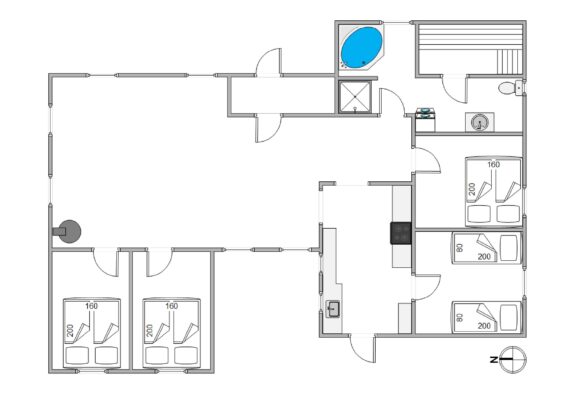 Das Ferienhaus bietet vier Schlafzimmer, in denen ihr einen erholsamen Schlaf findet. Drei Schlafzimmer sind mit Doppelbetten ausgestattet, während sich im vierten Schlafzimmer zwei Einzelbetten befinden. Die Fußbodenheizung im Badezimmer sorgt dafür, dass ihr morgens entspannt aufstehen könnt, ohne euch Gedanken über kalte Füße machen zu müssen.Eine Waschmaschine und ein Trockner sorgen dafür, dass ihr schon vor der Anreise, euer Reisegepäck reduzieren könnt.