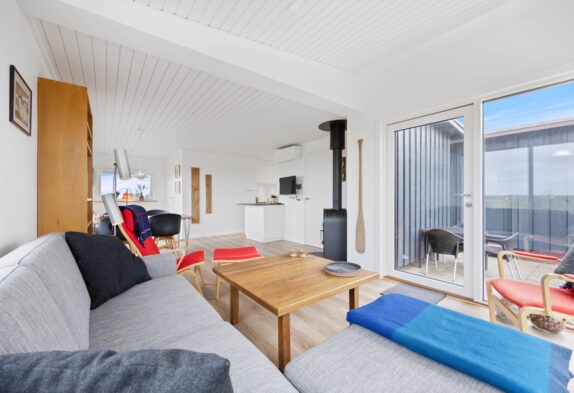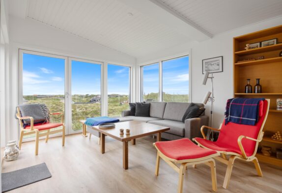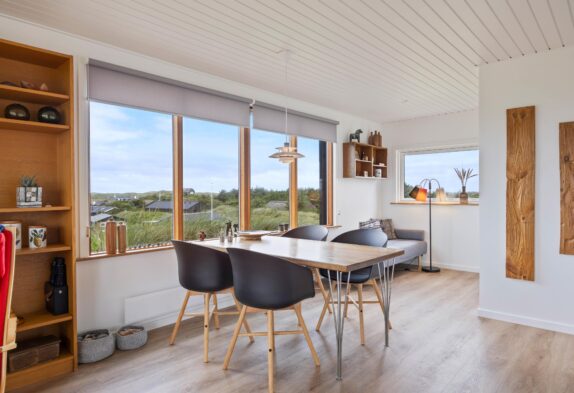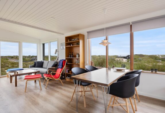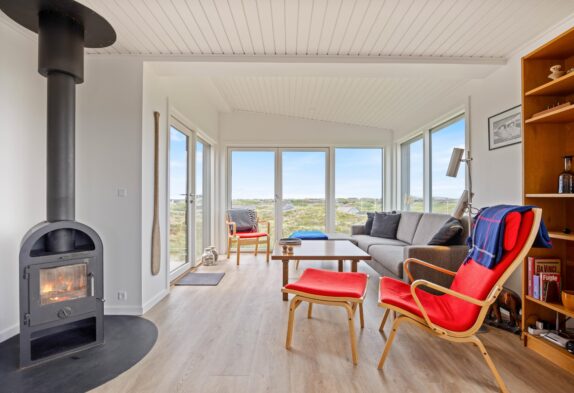 Das Ferienhaus begrüßt euch inmitten der Dünen von Houvig. Das helle, freundliche Raumklima durch die bodentiefen Fenster, lassen die 48m2 Wohnfläche großzügig wirken und vermitteln ein offenes, freundliches Wohnkonzept. Aus den großen Fenstern habt ihr einen beeindruckenden Blick über die schöne Landschaft von Houvig. Durch die offene Raumgestaltung seid ihr auch beim Kochen vollständig ins Familienleben integriert und das Zubereiten der Speisen wird in der gut ausgestatteten Küche zum Genuss. Lasst euch eure Köstlichkeiten am gemütlichen Esstisch schmecken und genießt anschließend euer Glas Wein vor dem hyggeligen Kamin.