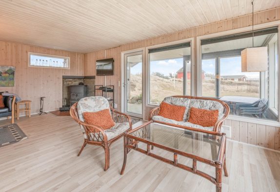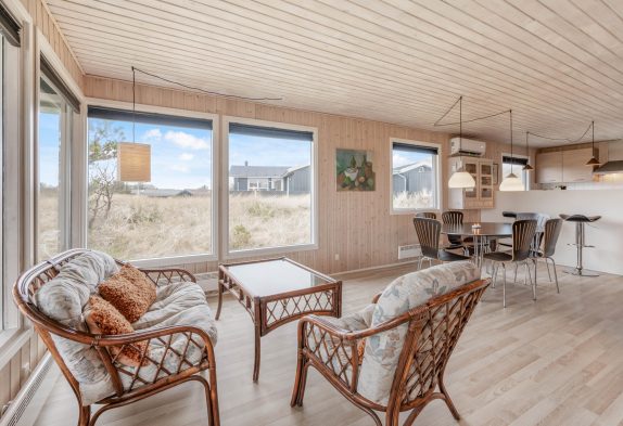 Das Ferienhaus in Houvig liegt auf einer schönen Düne mit Büschen und Gräsern. Die nach Südosten ausgerichtete Terrasse ist ein idealer Ort, um die erste Tasse Kaffee des Tages in der Sonne zu genießen. Im Südwesten befindet sich eine schöne überdachte Terrasse, die sich an lauen Sommertagen hervorragend eignet. So könnt ihr jeden Tag eures Urlaubs grillen – auch wenn es regnet.