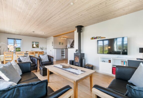 Mit Platz für 8 Personen in dem Ferienhaus ist es perfekt für eine große Familie oder für zwei kleinere Familien. Im Wohnzimmer des Ferienhauses könnt ihr alle eure Urlaubsgäste für viele gemütliche Urlaubsmomente am Esstisch, in der Küche oder im Wohnzimmer vor dem Fernseher versammeln.