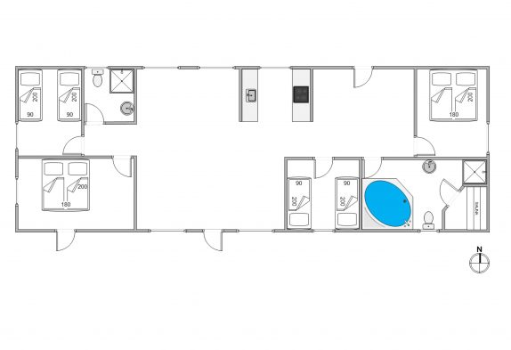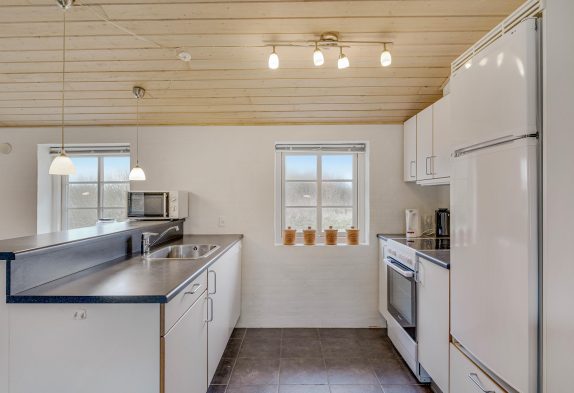 Die große Küchennische ist ohne Zweifel das Herzstück des Hauses. Von hier aus kann sich die Familie bestens versorgen, versammeln und gleichzeitig unterhalten. Der Raum wirkt dank der hohen Decken hell und einladend und es ist ein sehr gut aufgeteiltes Ferienhaus. Wer einmal einen ruhigen Moment braucht, kann sich auch einfach zurückziehen – insgesamt stehen euch 4 Schlafzimmer zur Verfügung.