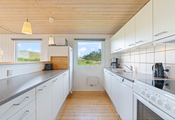 Das Ferienhaus in Søndervig besticht durch seine komfortablen und gut ausgestatteten Räume. Die Küche ist vollständig ausgestattet und enthält eine Spülmaschine, die euch nach gemeinsamen Mahlzeiten viel Arbeit abnimmt. Das offene Wohnkonzept sorgt dafür, das ihr hier viel gemeinsame Zeit verbringen könnt. Gemeinsam Kochen wird bestimmt für viel Freude sorgen oder ihr veranstaltet spannende Spieleabende. An kühleren Tagen könnt Ihr es euch am Holzofen gemütlich machen und die wohlige Wärme genießen.Das Ferienhaus verfügt über drei gemütliche Schlafzimmer, eines mit einem Doppelbett , eines mit einer Größe von 1,40 m und ein Schlafzimmer mit 2 Einzelbetten, die alle für erholsamen Schlaf sorgen. Eine Waschmaschine ist vorhanden.