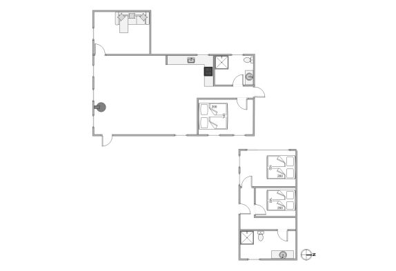 Die schöne Wohnküche ist mit einem Kühlschrank (20 Litern Gefrierkapazität), Mikrowelle und Geschirrspüler ausgestattet. Das Ferienhaus verfügt über 2 Schlafzimmer im Haupthaus, wovon eines mit einem Doppelbett und eines mit einem Schlafsofa ausgestattet ist. Des Weiteren findet ihr im Anbau noch 2 weitere Schlafzimmer. 2 Zimmer sowie ein separates Badezimmer wurden im geräumigen Nebengebäude untergebracht. Das Badezimmer im Haupthaus ist mit einer Fußbodenheizung ausgestattet. Das Badezimmer im Nebengebäude verfügt über keine Fußbodenheizung.