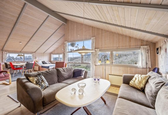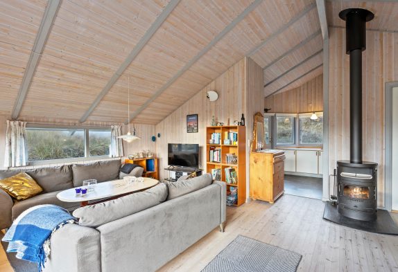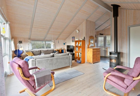 Wenn ihr das Ferienhaus betretet, werdet ihr von einer hellen und freundlichen Einrichtung begrüßt, sodass ihr euch sofort wohlfühlen könnt. Der Holzofen steht in der Mitte des Ferienhauses und sorgt für Wärme und Gemütlichkeit an kalten Tagen.