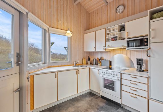 Die meiste Zeit eures Urlaubs werdet ihr zweifellos im kombinierten Wohn- und Küchenbereich verbringen. Hier könnt ihr lustige Brettspiele spielen, während ihr die Küche im Auge behaltet. Das Ferienhaus ist auch mit einer Waschmaschine ausgestattet, sodass ihr immer saubere Kleidung haben werdet. Abends könnt ihr euch in eines der beiden Schlafzimmer zurückziehen. Das eine Schlafzimmer verfügt über ein Doppelbett, während ihr ein Etagenbett in dem 2. Schlafzimmer findet. Das 2. Doppelbett im Ferienhaus befindet sich als Alkoven im Wohnzimmer.