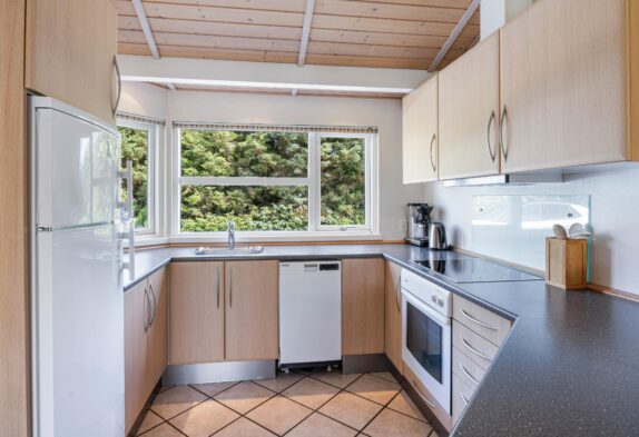 Der Mittelpunkt eures Urlaubs wird zweifellos der offene Wohn-Essbereich sein. Hier könnt ihr die Wärme des Holzofens genießen und ein lustiges Brettspiel spielen. Die Geschirrspülmaschine sorgt dafür, dass der Abwasch erledigt wird, während ihr die nächsten Aktivitäten für den kommenden Tag plant. Für die Reduzierung des Reisegepäcks stehen Waschmaschine und Trockner bereit.
