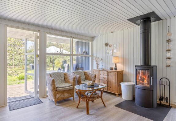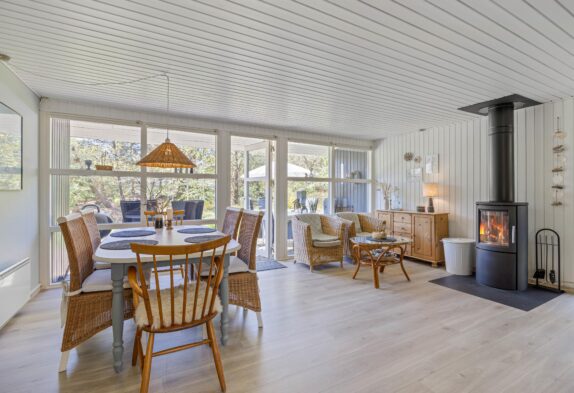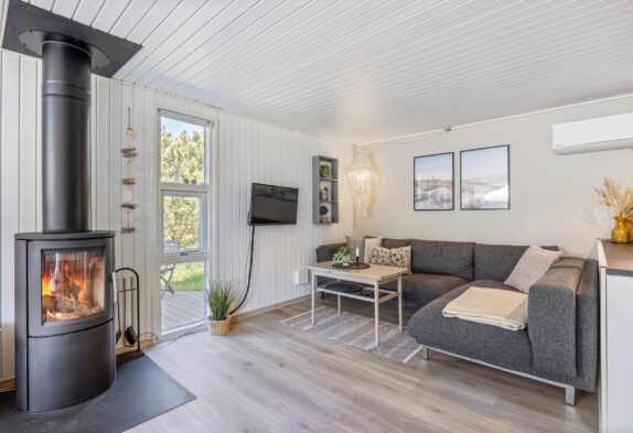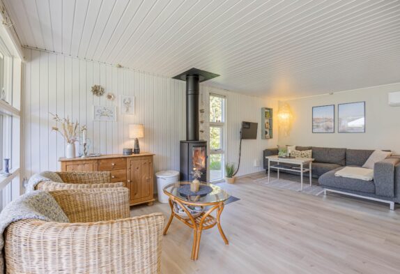 Das charmante Häuschen liegt wunderschön in der westjütländischen Natur. Im Inneren bietet dieses Ferienhaus eine authentische Ferienhausatmosphäre mit einem Kamin, der besonders an kühleren Tagen eine angenehme Wärme spendet. Es ist hell und einladend, was unter anderem auf die großen Fenster zurückzuführen ist, durch die die Sonnenstrahlen ihren Weg ins Haus finden. Der Fernseher verfügt über deutsche Programme und damit ihr eure Lieblingsserien auch im Urlaub streamen könnt, gibt es einen Goolge Chromecast.