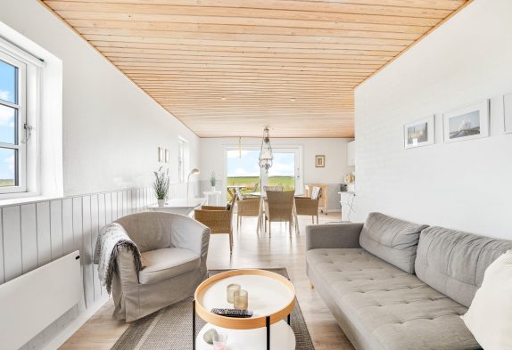 Die Ferienwohnung begrüßt euch mit einer hellen und gemütlichen Einrichtung, mit komfortablen Möbeln und in harmonischen, neutralen Farben, die den Fokus nicht von der schönen Aussicht ablenken. Hier wird es keinen Zweifel geben, wohin der Blick gerichtet ist: Die großen Fenster sowie die herrliche Aussicht, die die Natur Westjütlands draußen umrahmen, sind ein wahrer Magnet für die Augen.