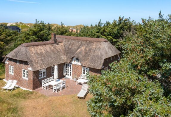 Die Lage des Ferienhauses am Ende einer ruhigen Sackgasse, umgeben von einem kleinen Wäldchen, macht das Ferienhaus zu einem idealen Rückzugsort, um auszuspannen. Das Ferienhaus liegt wunderbar im letzten Dünenkamm, eine einzigartige Lage, ungestört und im Einklang mit der Natur.Erlebt unvergessliche Sommerabende auf der offenen Terrasse, die mit schönen Gartenmöbeln ausgestattet ist. Hier könnt ihr gemeinsam grillen und die langen, lauen Abende genießen.