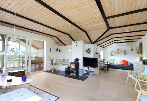 Dieses Ferienhaus hat eine einladende Ausstattung. Die offene Küche ist nicht nur mit einer Spülmaschine, sondern auch mit allen notwendigen Haushaltsgeräten ausgestattet, um gemeinsame Kochabende zu einem kulinarischen Erlebnis zu machen. Im Wohnzimmer verleiht der Kaminofen dem Raum eine wohlige Atmosphäre, ideal für entspannte Abende.