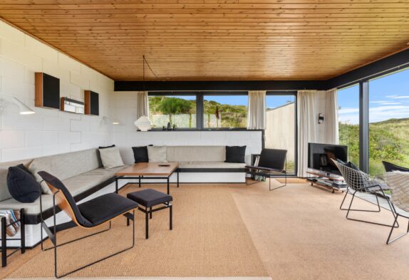 Der deckenhohen Fenster im Wohnraum sorgen nicht nur für einen fantastischen Lichteinfall, sondern durch den Panoramaausblick könnt ihr die Ruhe der umliegenden Natur mit seiner Heide- und Dünenlandschaft auf euch wirken lassen.