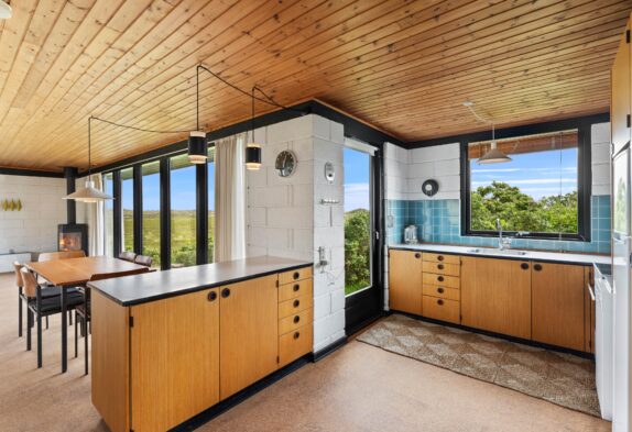 Das 93m² große und im Jahr 2018 im Stil der 70’er Jahre renovierte Ferienhaus lädt mit seinem großen kombinierten Wohnraum zum entspannten Urlaub ein. Die Küche bietet sowohl mit Geschirrspüler als praktischen Alltagshelfer, als auch mit viel Stauraum und großen Küchenoberflächen viel Platz, um mit der ganzen Familie das Essen zuzubereiten. Der große Kühlschrank mit 169L und dem Gefrierfach mit 37L bieten ausreichend Platz, so dass der Koch des Urlaubs leckere Speisen kreiren kann.