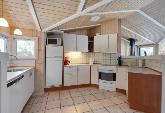 Durch das Oberlicht über der Sofaecke ist der Wohnbereich auch schön hell und lässt an sonnigen Tagen die Sonne ins Ferienhaus hinein. Eine moderne Wärmepumpe sorgt für die von euch gewünschte Temperatur. Die Küche ist mit einer Mikrowelle, einer Geschirrspülmaschine und einer Kühl- und Gefrierkombination ausgestattet, sowie verfügt über ausreichend Arbeitsfläche.
