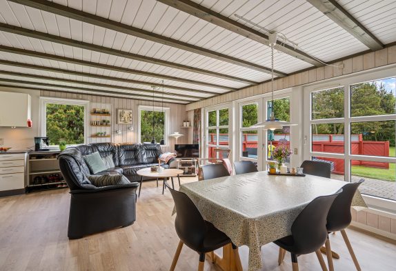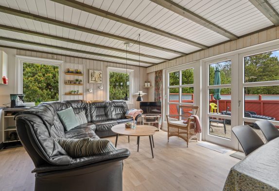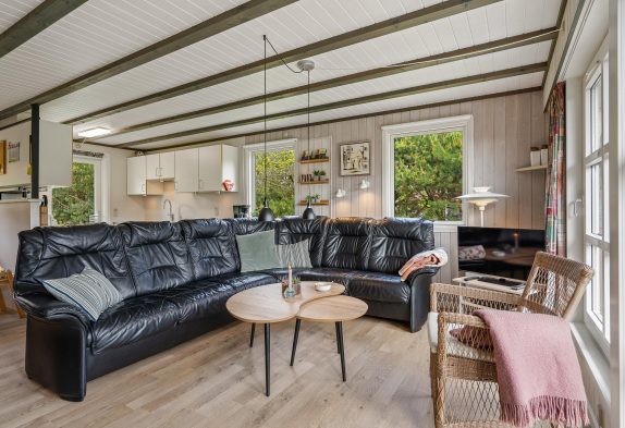Dieses traditionelle von Bäumen und Büschen gut abgeschirmtet Ferienhaus auf Kallesensvej 11 liegt an Ende einer Sackgasse und hat Platz für eine Familie mit bis zu 6 Personen. Das Haus verfügt über eine Sauna und einen Kamin sowie Sandkasten und Schaukel für die Kleinsten. Auf dem großen Grundstück ist viel Platz zum Herumtoben und Spielen. Hier wurde praktisch und gemütlich eingerichtet und im Grunde findet ihr hier alles, um einige schöne und erholsame Tage ganz nah am Meer verbringen zu können.