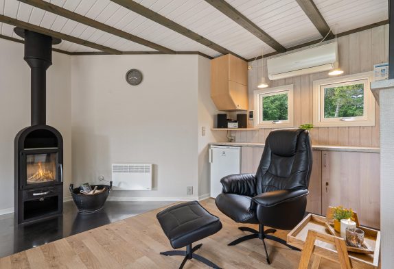 Die Küche mit Geschirrspüler ist offen zum Wohnbereich hin und der Essbereich hat eine grosse Fensterparti mit Aussicht ins Grüne. Hier mag man sich gerne zum Essen aufhalten und vielleicht zusammen den nächsten Tag planen. Der Wohnbereich verfügt über einen Kaminofen und gemütliche Sitzgelegenheiten, wo ihr einfach einmal die Beine hochlegen und es euch gemütlich machen könnt. Gerade am Abend ist es doch so richtig gemütlich, wenn alle beieinander sitzen, die Erlebnisse des Tages Revue passieren lassen und dabei im Hintergrund dem Knistern und Knacken des Feuers zu lauschen. Eine Wärmepumpe sorgt für behagliches Klima und Wärme auf energiebesparende Weise.