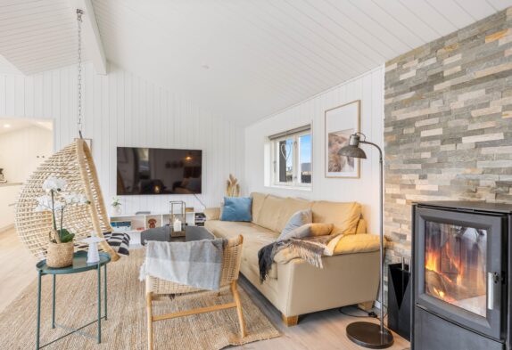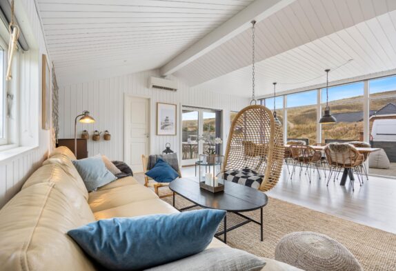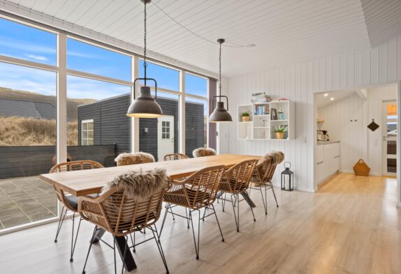 Im Jahr 2021 wurde das Ferienhaus renoviert und bildet mit seiner modernen Einrichtung den perfekten Rahmen für viel Ruhe und Entspannung. Durch die großen Fenster im Wohnraum mit Sitzecke und Essbereich habt ihr sowohl einen großartigen Lichteinfall als auch einen fantastischen Ausblick auf die Dünen, die nur einen Steinwurf entfernt liegen.
