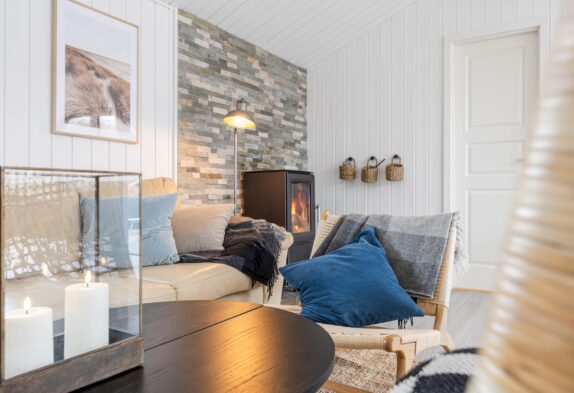 Kamin und Panoramaausblick im Wohnraum sorgen für Ruhe und Entspannung