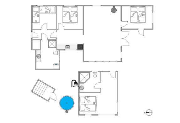 Diese Feriendomizil bietet Platz für 8 Personen, die sich auf 3 Schlafzimmer und das Annex verteilen können. In zwei Schlafzimmern sorgen Doppelbetten mit Höhenverstellung für schöne Schlummerstunden in der Nacht. In dem 3. Zimmer im Haus gibt es zwei Betten in der Grösse von 90 x 200 cm.