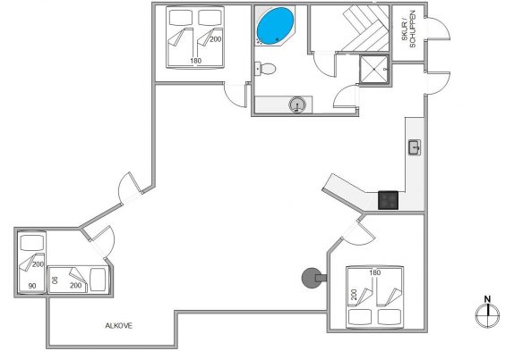 Euch stehen 3 Schlafzimmer zur Verfügung, wovon 2 Schlafzimmer mit jeweils einem Doppelbett ausgestattet sind, während das 3. Schlafzimmer über 2 Einzelbetten verfügt. Das Badezimmer mit Fußbodenheizung sorgt für zusätzlichen Komfort und umfasst zudem eine Sauna und einen Whirlpool.
