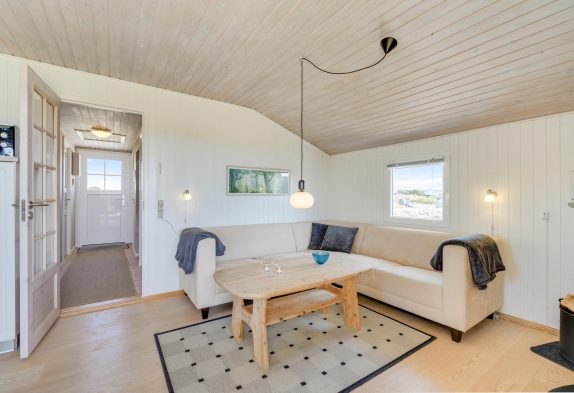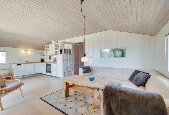 Das Herz dieses schönen Ferienhauses ist der kombinierte Wohnraum mit Küche, Ess- und Wohnzimmer. Hier befindet sich die Sitzecke, in der ihr einen gemeinsamen Filmabend veranstalten könnt.