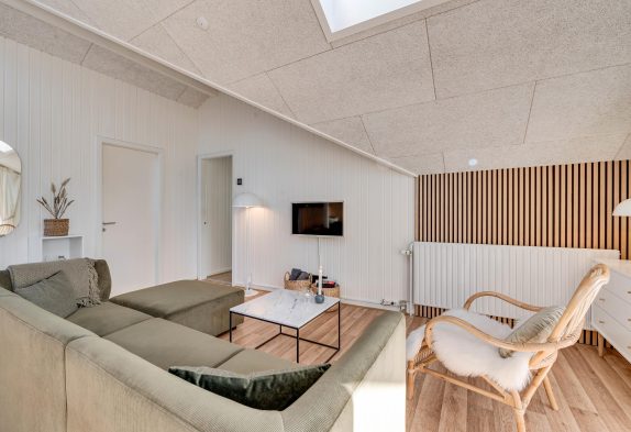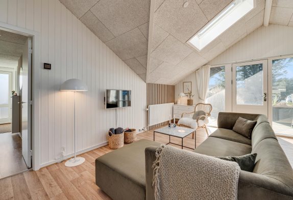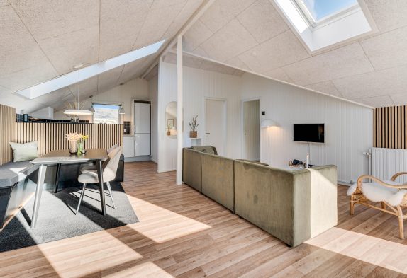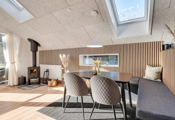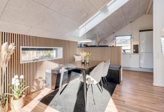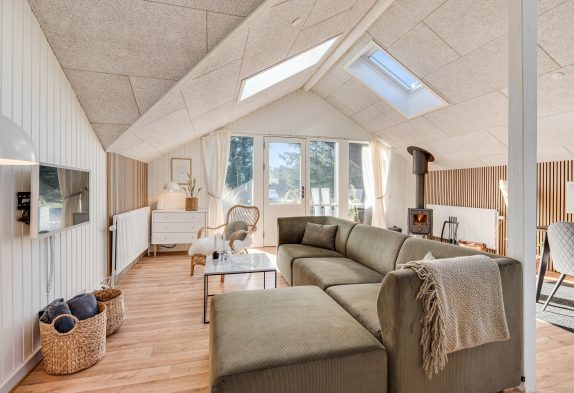 Das Ferienhaus wirkt hell und modern – und das Licht im Inneren verleiht der Atmosphäre im Ferienhaus den letzten Schliff. Vom ersten Moment an, in dem ihr das Ferienhaus betretet, werdet ihr euch sofort wie zu Hause fühlen. Der große Küchenbereich ist der perfekte Ort, um sich zu versammeln. In dem hellen und offenen Raum mit Dachschrägen sind gemütliche und lustige Momente mit Filmen, Spielen und gutem Essen geplant. Wenn ihr die typische Ferienhausatmosphäre haben möchtet, dann könnt ihr gerne den Holzofen anzünden.