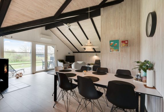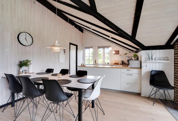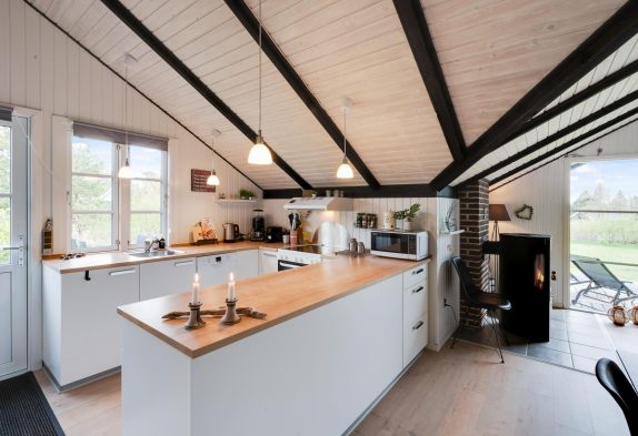Das Wohnzimmer dient euch als zentraler Treffpunkt des Ferienhauses und lädt mit seinem Kaminofen zu gemütlichen Stunden ein. Hier könnt ihr entspannte Abende bei wohliger Wärme genießen und dank Google Chromecast eure Lieblingsserien weiterschauen. Die modern ausgestattete Küche erfüllt alle Anforderungen für die Zubereitung köstlicher Mahlzeiten. Zu den Annehmlichkeiten zählen eine effiziente Spülmaschine und großzügige Arbeitsflächen. Der angrenzende Essbereich ist ideal für gemeinsames Speisen und gesellige Runden mit Familie oder Freunden.