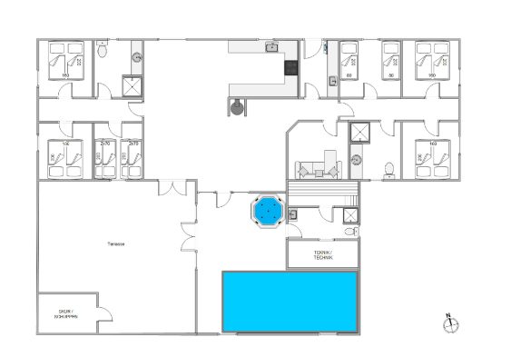 Das Ferienhaus verfügt über 3 Badezimmer, sodass es bei der Morgenroutine zu keinem Stau kommt. Alle drei Badezimmer sind mit einer Fußbodenheizung ausgestattet, sodass kalte Füße kein Thema sind. Das Ferienhaus verfügt über insgesamt 6 Schlafzimmer, von denen eines mit 2 Etagenbetten ausgestattet ist. Im Poolraum befinden sich neben dem 18 m2 großen Pool auch ein Whirlpool und eine Sauna, die zum Wellnesserlebnis im Urlaub beitragen. Hier könnt ihr eure Batterien so richtig aufladen.
