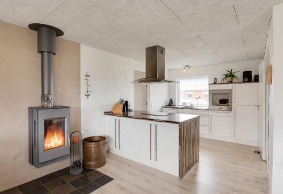 Der zentral platzierte Kamin sorgt mit seinem Knistern des Holzes und seine wohlige Wärme für den entspannten und kuscheligen Abend, entweder mit dem neuesten Krimi und einer leckeren Tasse Tee in der Hand oder beim gemeinsamen Filmeabend mit den Kindern.