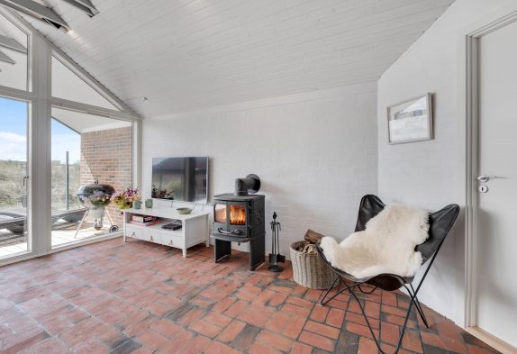 Moderne und gemütliche Einrichtung mit Holzofen und Chromecast