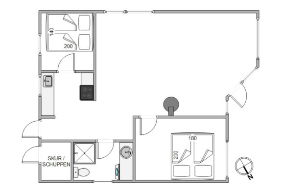 Das Ferienhaus ist mit 2 Schlafzimmern ausgestattet, die beide über ein Doppelbett verfügen. Darüber hinaus gibt es 1 Badezimmer mit Fußbodenheizung, damit ihr morgens keine kalten Füße bekommt. Das Badezimmer verfügt des Weiteren über eine Waschmaschine.