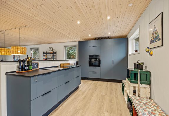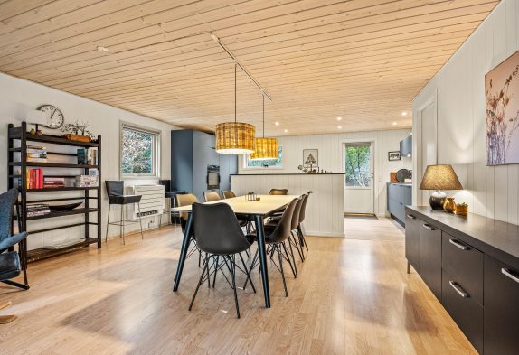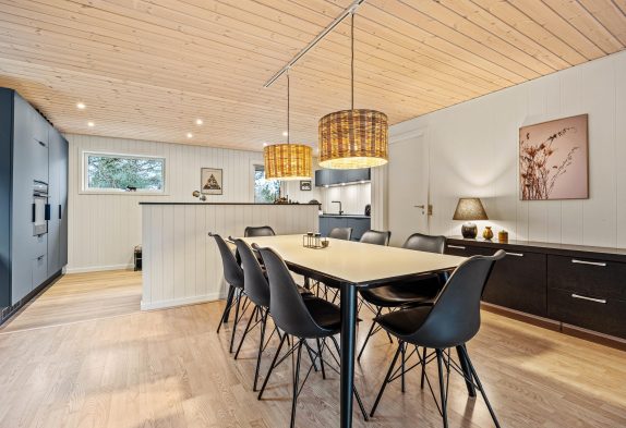 Das geschmackvoll eingerichtete Sommerhaus lädt ein zu entspannten Stunden. Das Wohnzimmer und die Küche stehen in offener Verbindung – so wurde Platz geschaffen für gemeinsame Aktivitäten im Haus. Zu abendlichen Stunden könnt ihr euch auf dem bequemen Sofa zurücklehnen und dem lodernden Feuer im Kaminofen zusehen. Streamt einen guten Film über den Chromecast oder nutzt das TV-Paket um den Tag ruhig ausklingen zu lassen.