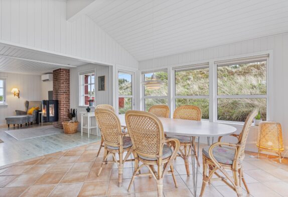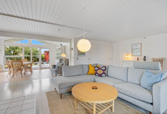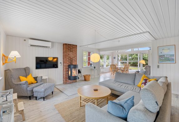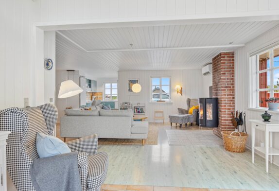 Im Zentrum eures gemütlichen Ferienhauses erwartet euch ein in hellen und freundlichen Farben und im skandinavischen Stil gestalteter Wohnbereich. Eine bequeme Sofaecke mit einem Sessel direkt am wärmenden Feuer des Kamins lädt euch zu einem gemeinsamen DVD-Abend mit der ganzen Familie ein.
