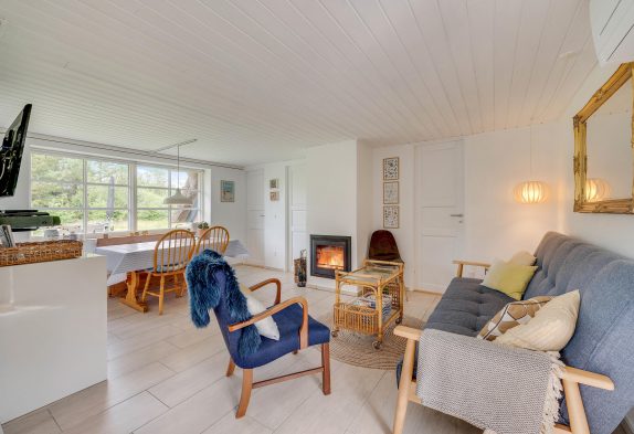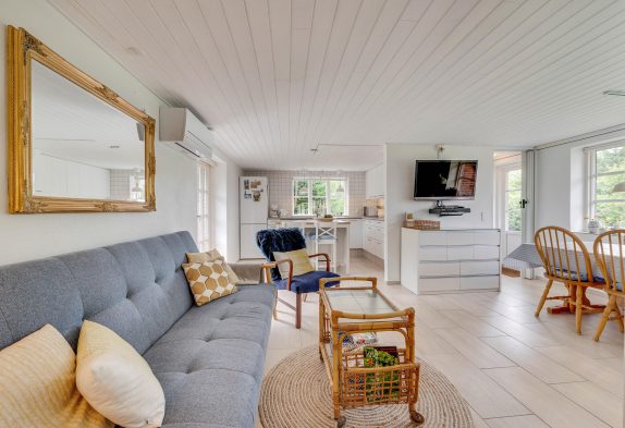 Das Wohnzimmer steht in offener Verbindung mit der Küche und dem Essbereich des Ferienhauses, die zusammen den Wohnbereich bilden. Es gibt viele schöne gemeinsame Stunden, in denen ihr dank Chromecast unter anderem euren Lieblingsfilm im Fernsehen sehen könnt.