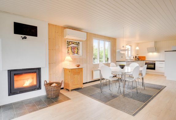 Insgesamt verfügt dieses Sommerhaus über 3 Schlafzimmer mit Doppelbetten und einem Einzelbett. Ausgestattet mit einer energiesparenden Wärmepumpe, die für schnelles Aufheizen und ein gutes Raumklima sorgt, müsst ihr auch an Tagen, an denen der Kamin eine Pause einlegt, nicht frieren.