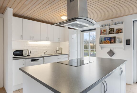 Das erste, was euch begrüßt, ist die helle Umgebung, die sich in allen Räumen des Ferienhauses ausbreitet. Das Esszimmer und das Wohnzimmer stehen in offener Verbindung mit der schönen Küche, die mit allen notwendigen Utensilien ausgestattet ist. Hier findet ihr selbstverständlich auch eine Spülmaschine, die euch den täglichen Abwasch erspart. Es gibt auch eine Waschmaschine mit eingebautem Trockner. Um eine durchgehende angenehme Temperatur im Ferienhaus zu gewährleisten, ist eine engergiesparenden Wärmepumpe im Ferienhaus installiert.