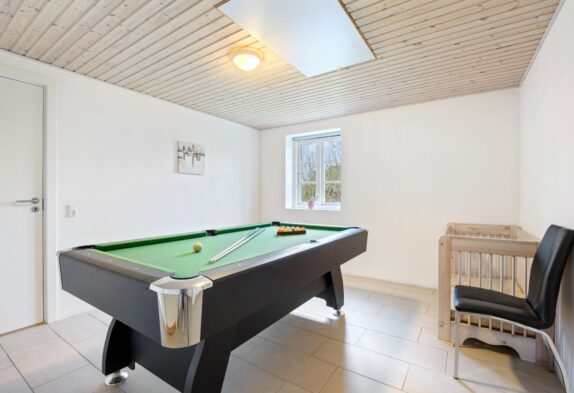 Die 12 Betten verteilen sich auf 5 Schlafzimmer – 3 mit Doppelbett, 1 Zimmer mit Einzelbetten und 1 Zimmer mit 2 Etagenbetten. Das Ferienhaus verfügt auch über einen Billardtisch, an dem ihr auf jeden Fall unterhaltsame Stunden verbringen werdet.