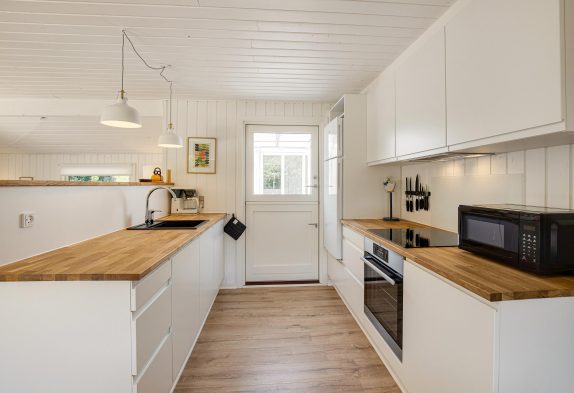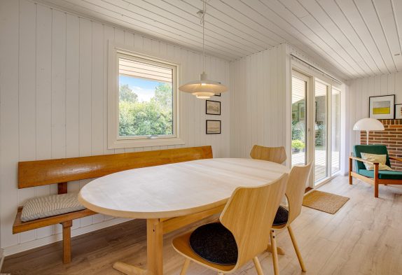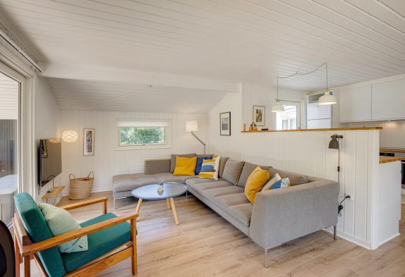 Das Ferienhaus bietet Platz für bis zu 6 Personen und verfügt über 3 gemütliche Schlafzimmer. Eines davon eignet sich besonders gut als Kinderzimmer, da es mit einem Doppelstockbett ausgestattet ist. Der offene Wohnbereich, kombiniert mit der Küche und dem Essbereich, lädt zum gemeinsamen Kochen und Entspannen ein. Für Abende mit euren Lieblingsserien könnt ihr den im Ferienhaus vorhandenen Chromecast nutzen.