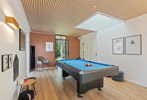 Im Aktivitäts- und Fitnessraum warten neben verschiedenen Fitnessgeräten für das tägliche Workout eine Dartscheibe und ein Billardtisch, den man in eine Tischtennisplatte umfunktionieren kann auf die Wettkampf begeisterten unter euch.