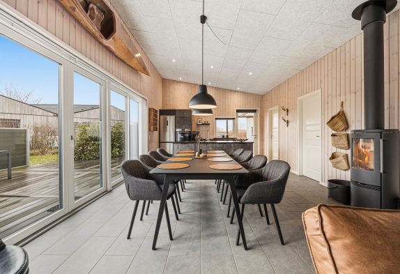 Die Ausstattung des Hauses ist mit Waschmaschine, Trockner sowie Geschirrspüler gerade für Familien mit Kindern herrlich komfortabel. Eine moderne Wärmepumpe sorgt für angenehme Temperaturen. Das Ferienhaus verfügt über eine angenehme Fußbodenheizung. Auch ein knisternder Kaminofen steht für gemütliche Stunden bereit